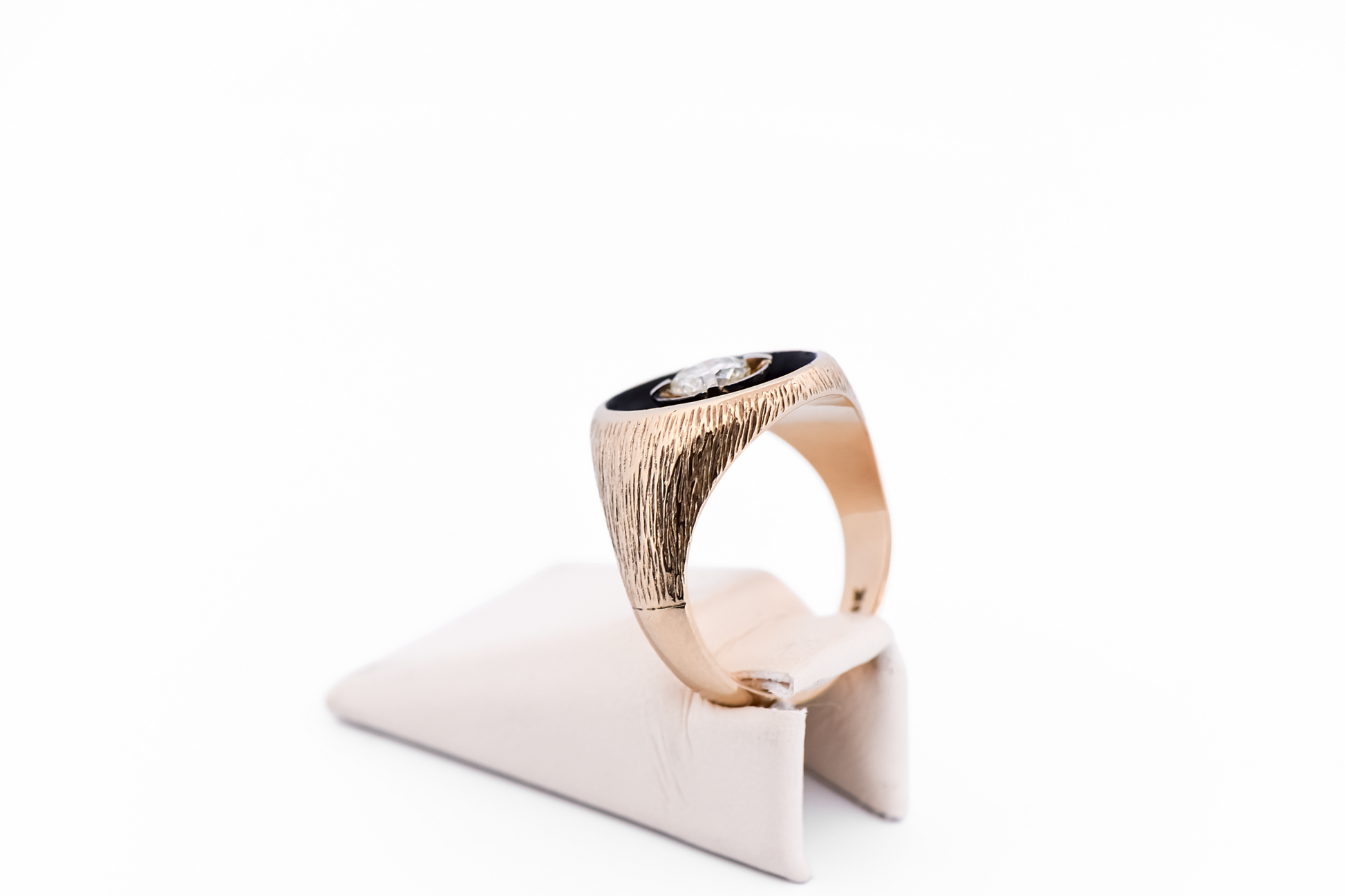 Vintage Gents Diamond Solitaire Pinky Ring with Black Antiqued Background
