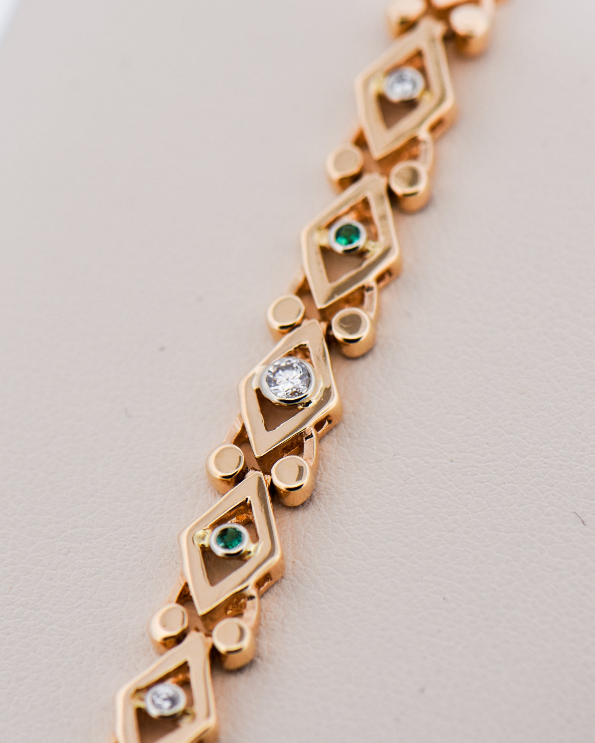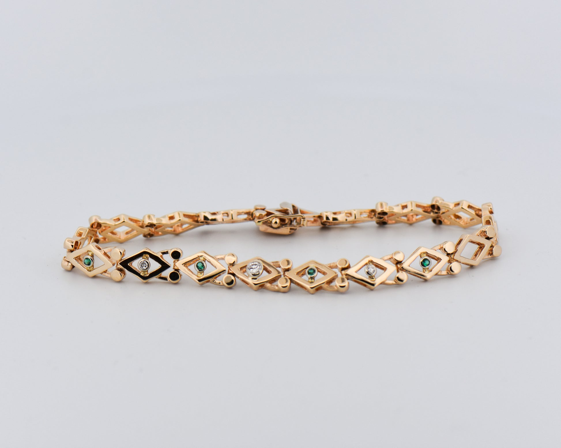 Vintage Gold Diamond-Link Bracelet with Emeralds & Diamonds