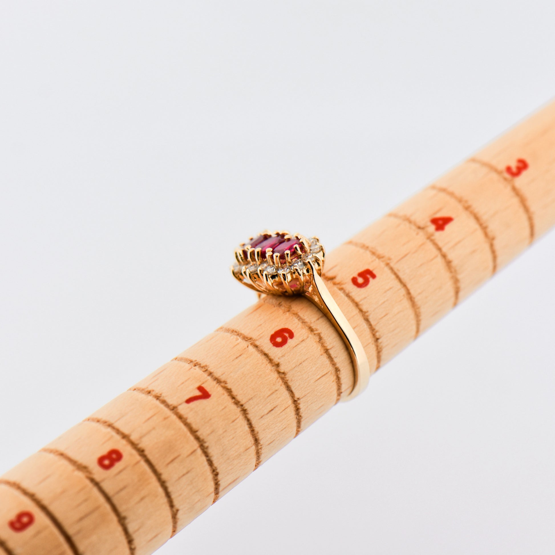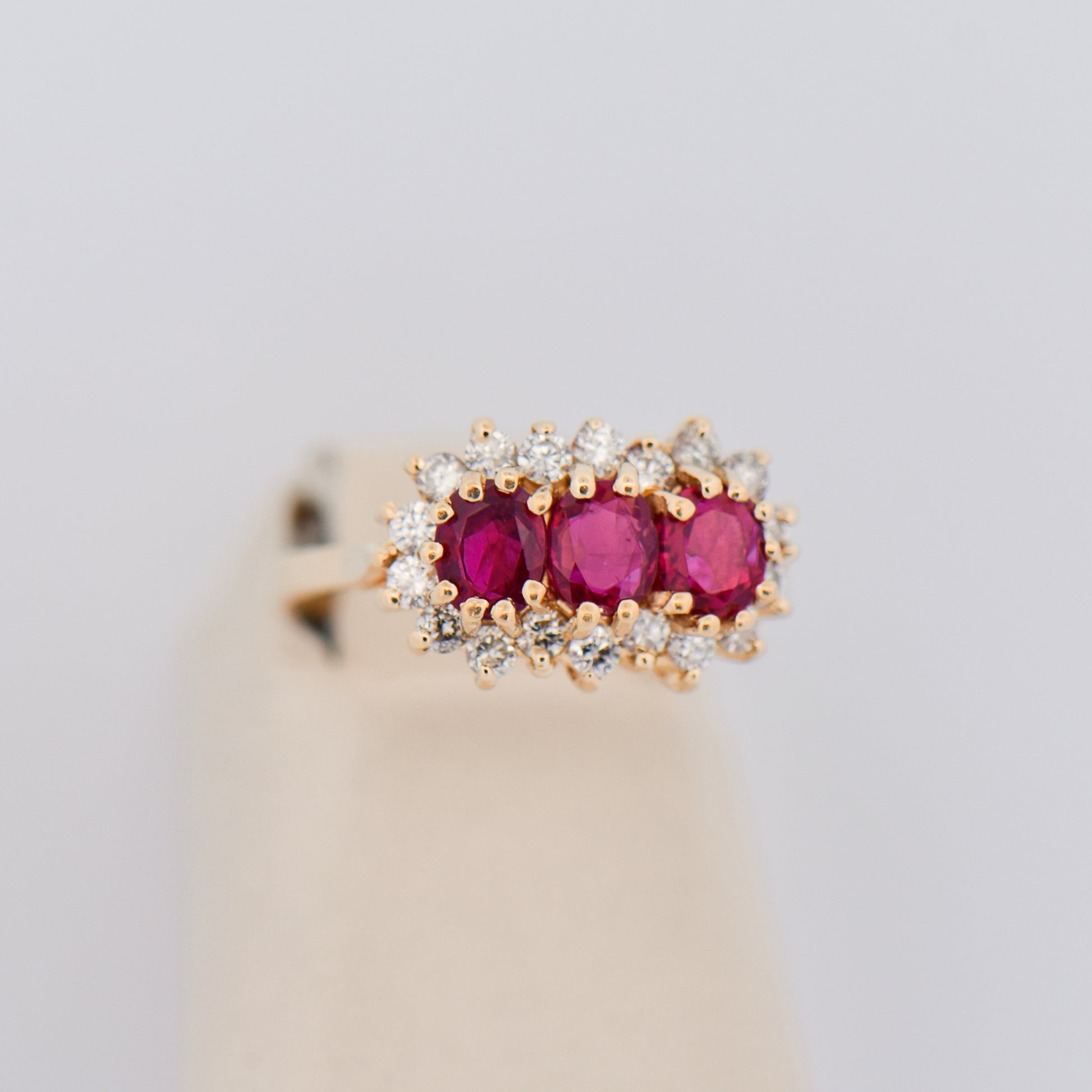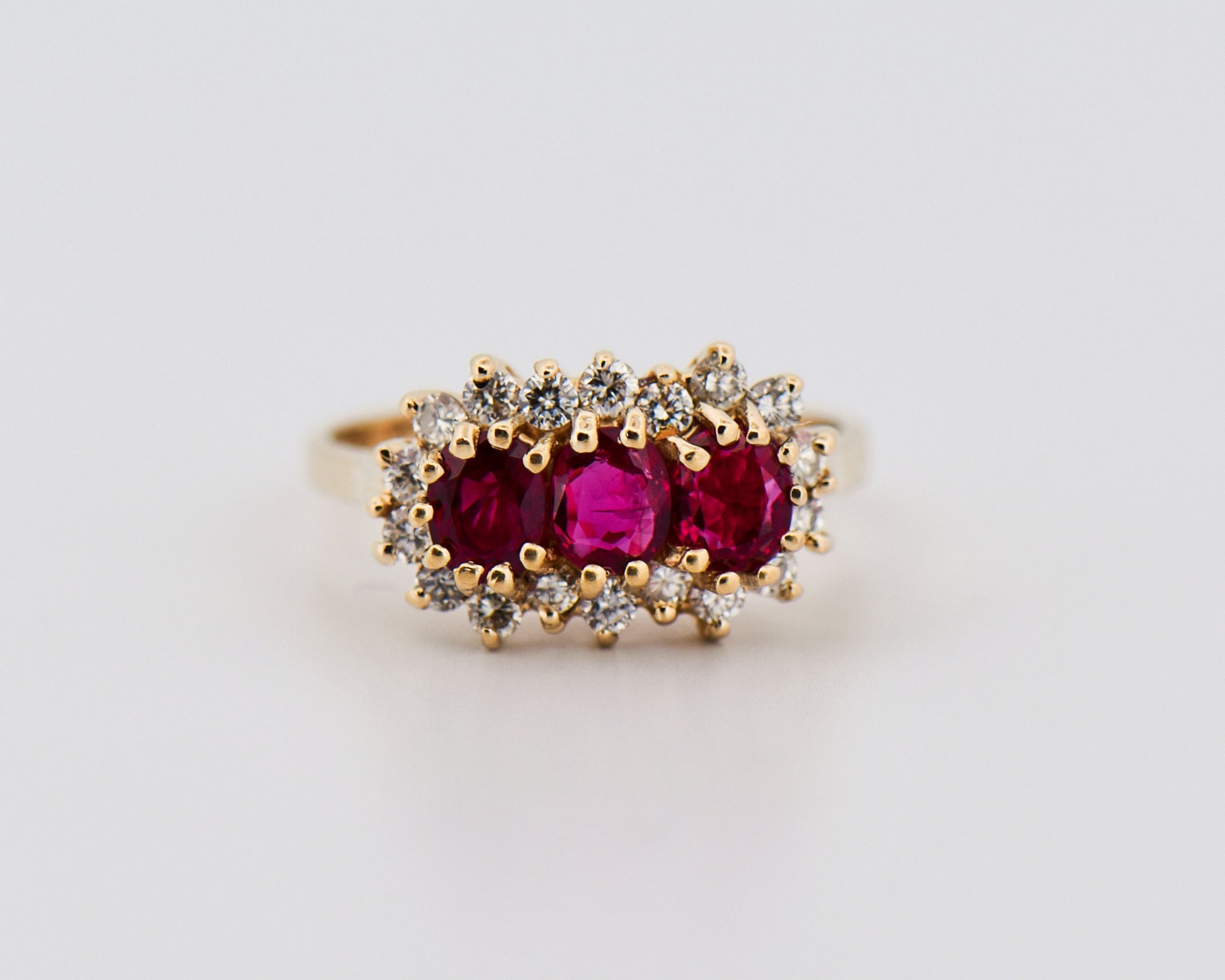 Vintage Three-Stone Ruby and Diamond Cluster Ring in 14k Gold