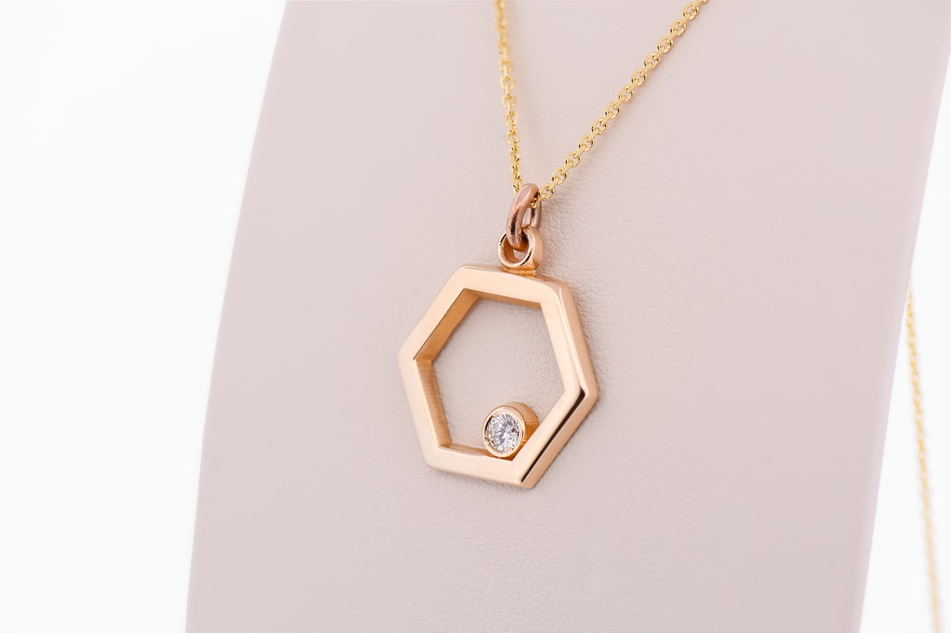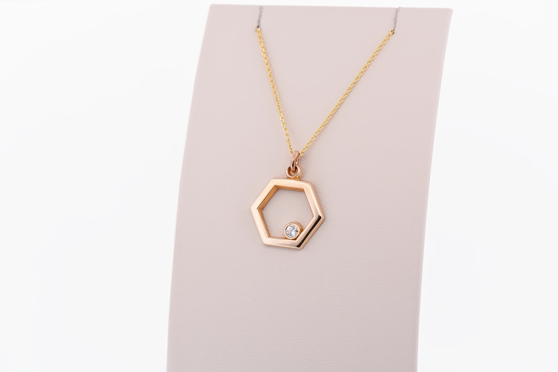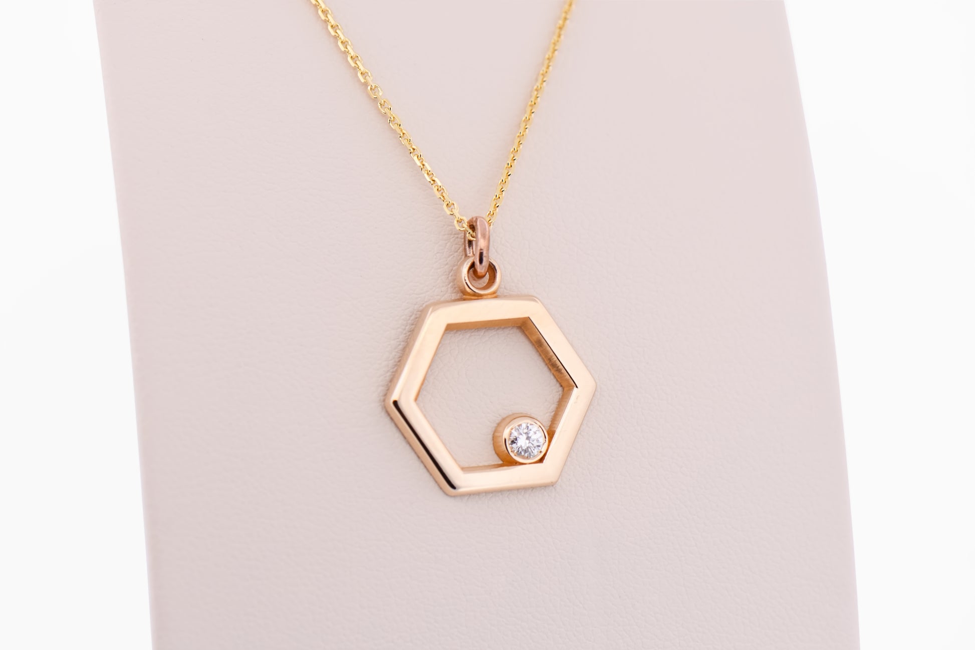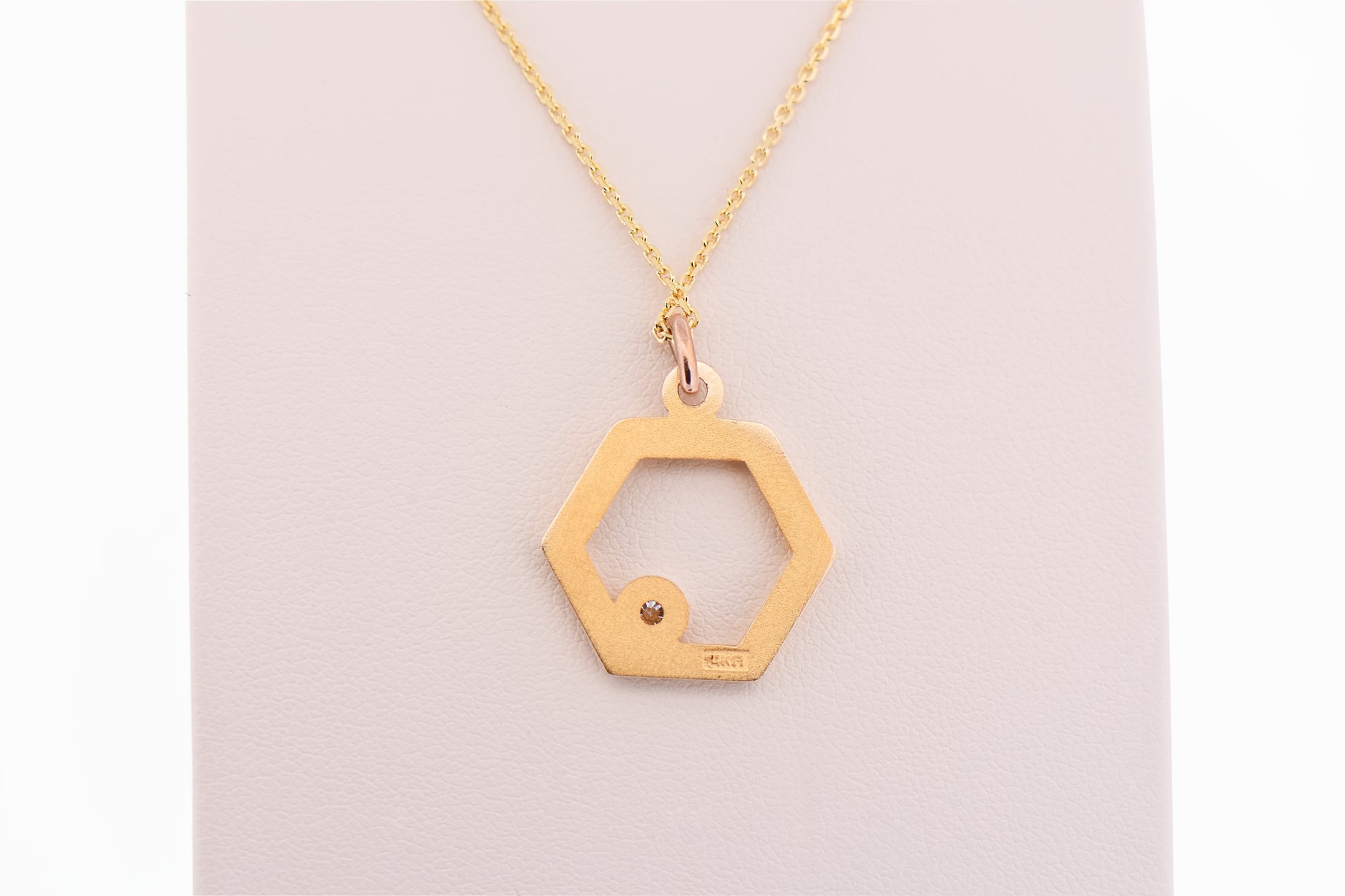 Designed for everyday versatility, this pendant layers beautifully with other necklaces or stands confidently on its own as a subtle statement piece. The crisp lines of the hexagon paired with the softness of yellow gold create a balanced look that transitions seamlessly from casual wear to more polished occasions.